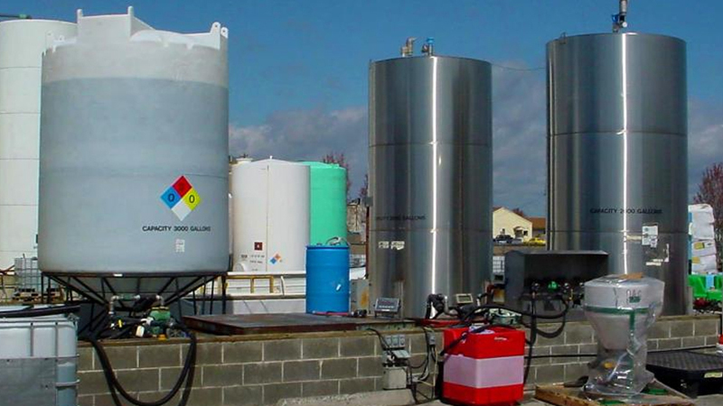 The Environmental Protection Agency (EPA) established standards for secondary containment structures for stationary pesticide containers. Stationary pesticide containers designed to hold undivided quantities of agricultural pesticides equal to or greater than 500 gallons of liquid pesticide or equal to or greater than 4,000 pounds of dry pesticide must have a secondary containment unit, unless any of the following conditions exists: