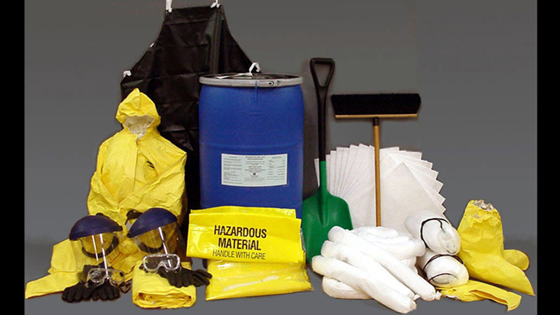 Department of Transportation (DOT) specified salvage drums or containers and suitable quantities of proper absorbent shall be kept available and used in areas where spills, leaks or ruptures may occur (29 CFR 1910.120(j)(1)(vii)).