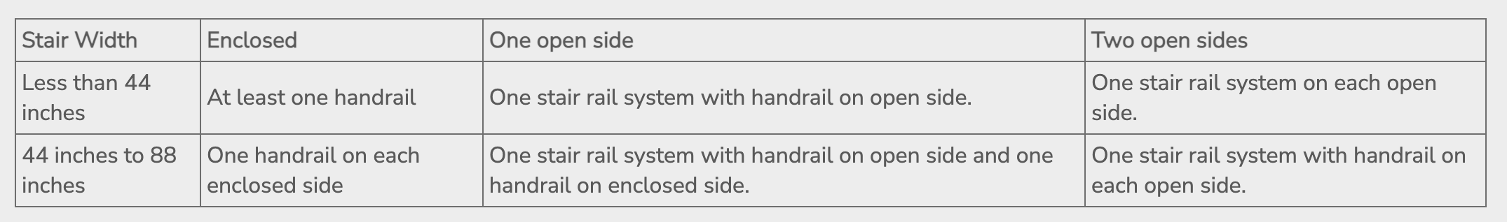 Employees exposed to an unprotected side or edge of a stairway landing that is 4 feet or more above a lower level must be protected by a guardrail or stair rail system. Each flight of stairs having at least 3 treads and at least 4 risers must be equipped with stair rail systems and handrails as follows: