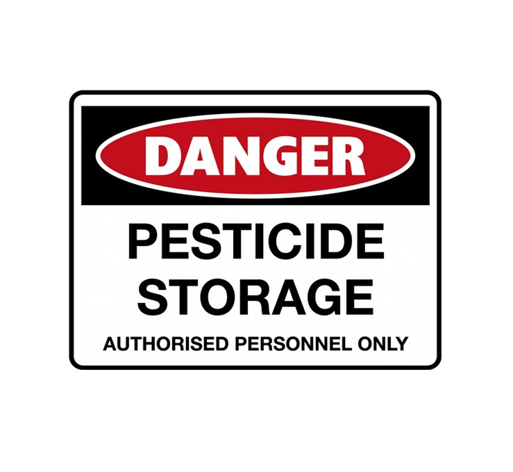 It is unlawful to use any registered pesticide in a manner inconsistent with its labeling. Identification signs should be placed on rooms, buildings and fences to advise of the contents and warn of their hazardous nature. These storage procedures and criteria should be observed at sites and facilities where pesticides and excess pesticides (and their containers) that are classed as highly toxic or moderately toxic and are required to bear the signal words DANGER, POISON, or WARNING, or the skull and crossbones symbol on the label are stored.